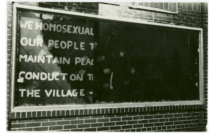 A photograph of the moderate Mattachine Society’s graffiti’d plea to shut down the Stonewall riots in 1969 in favor of passive, ‘peaceful’ protest. It didn’t work. From the Digital Public Library of America.