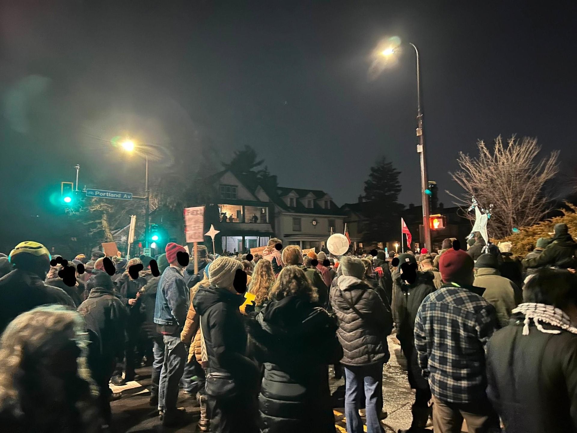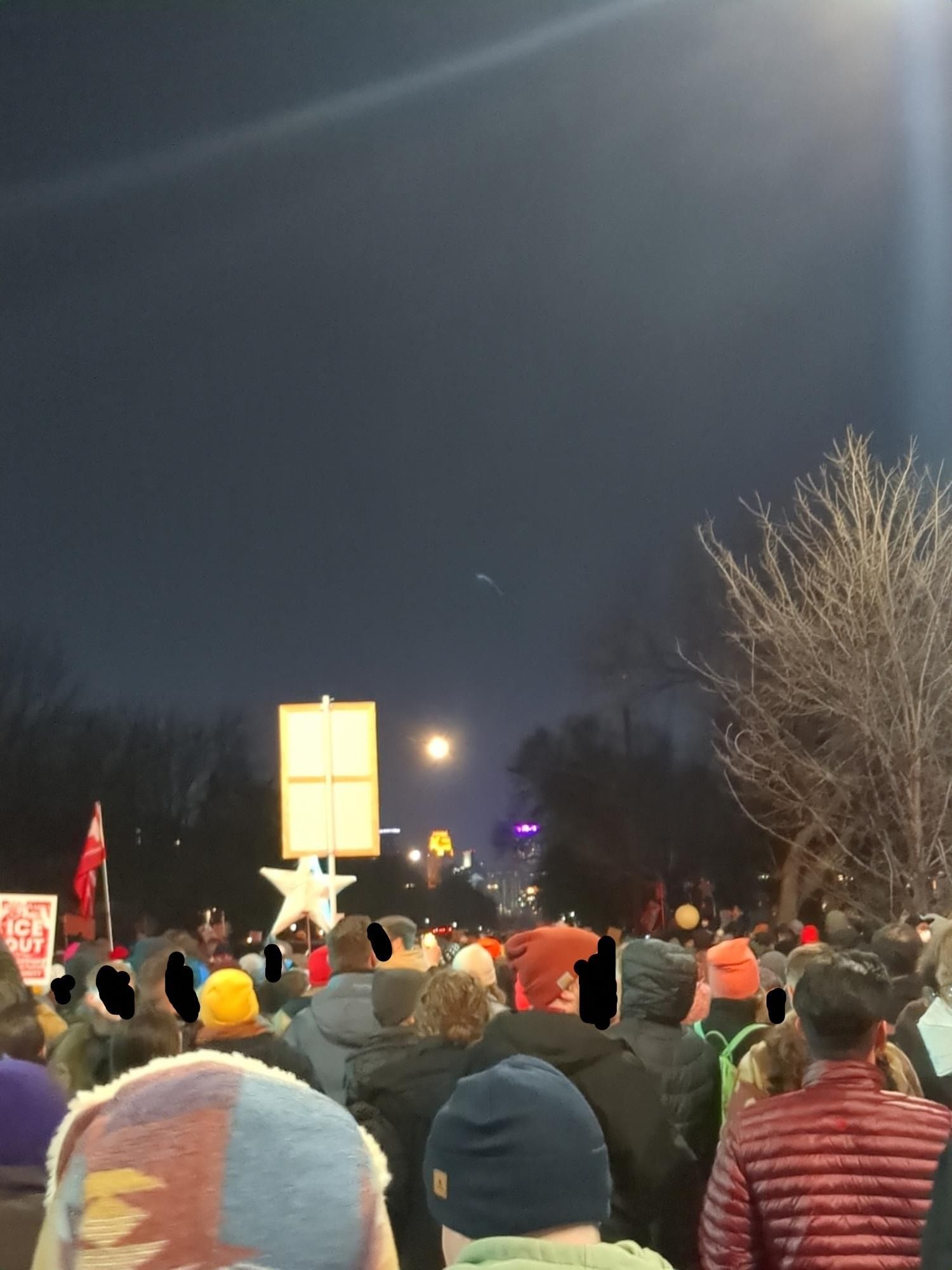 Community members rally in support for a Jan 7. vigil, less than 12 hours after the murder of Renee Nicole Good